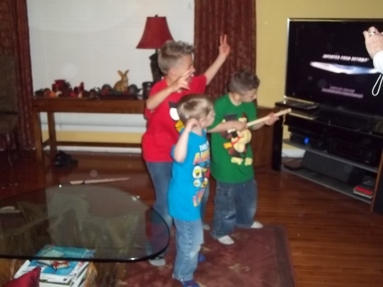 Soon Nana and Papa will be starting a huge construction project on a home they bought. This is special because, first, they had the boys in mind when they found the property, and second, it's going to be their dream home. It is located on a hill near a nature preserve, and there is a lookout deck near the house. Here they are discussing the plans with Aunt Sharon in the backyard. Hopefully by Christmas it will be completed.